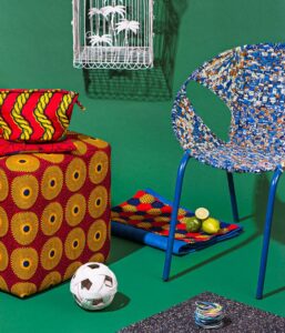 Élément central de la collection Keur le tissu Wax de première qualité pare de ses couleurs dynamisantes et de ses imprimés joyeux les poufs, coussins et autres pochettes imaginées. Linge de lit, nappe, Tote Bag ou encore robes de chambre sont aussi fabriqués à partir du fameux tissu. Des paniers en fibres végétales de différentes tailles, des tableaux naïfs, des lanternes, des malles de récup ou encore des petits fauteuils tressés viennent régulièrement émailler la collection et la jolie boutique comme autant d’accessoires uniques à s’approprier.