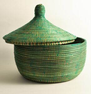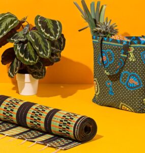 Élément central de la collection Keur le tissu Wax de première qualité pare de ses couleurs dynamisantes et de ses imprimés joyeux les poufs, coussins et autres pochettes imaginées. Linge de lit, nappe, Tote Bag ou encore robes de chambre sont aussi fabriqués à partir du fameux tissu. Des paniers en fibres végétales de différentes tailles, des tableaux naïfs, des lanternes, des malles de récup ou encore des petits fauteuils tressés viennent régulièrement émailler la collection et la jolie boutique comme autant d’accessoires uniques à s’approprier.