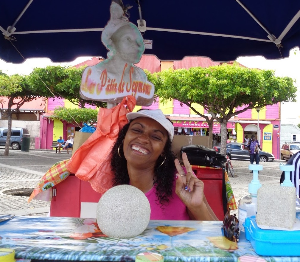 Depuis plusieurs années Aude poursuit une tradition familiale qui date de 1945 en proposant sur les marchés ou en sillonnant les villes de Guadeloupe les créations culinaires héritées par sa grand-mère. Cette commerçante pleine d’énergie n’hésite pas à interpeller les passants avec aisance et humour pour proposer ses produits (pâtisseries ou feuilletés).